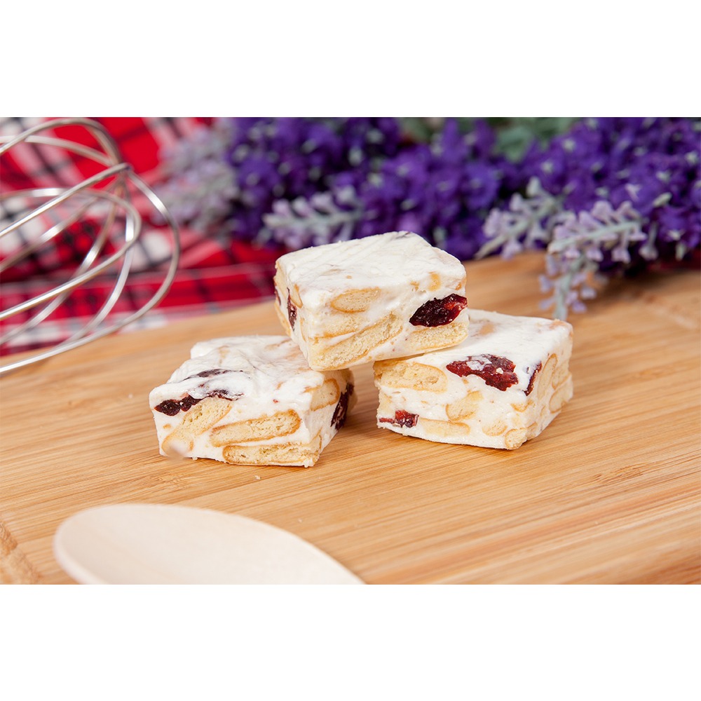 成份:麥芽糖、鮮奶油、蛋白、奶粉、鹽、麵粉、蔓越莓乾
