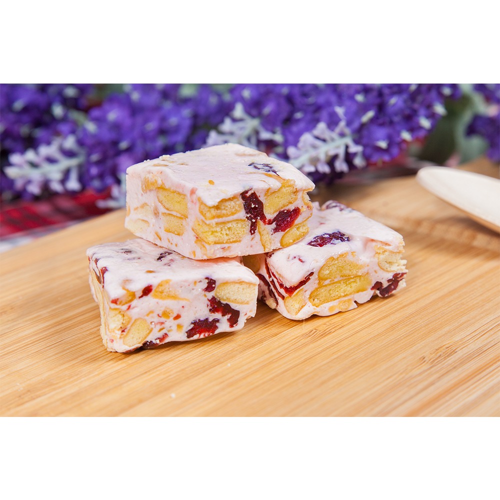 成份:麥芽糖、鮮奶油、蛋白、奶粉、鹽、麵粉、草莓粉、蔓越莓乾
